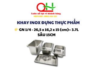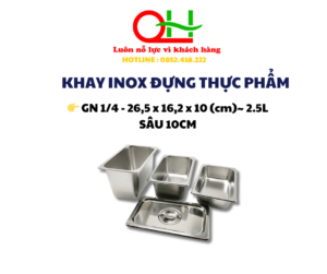 Khay đựng inox có nắp (hay còn gọi là khay GN, khay topping inox) là vật dụng chuyên dụng dùng để lưu trữ topping, thực phẩm và gia vị trong môi trường bếp hoặc quầy pha chế.
