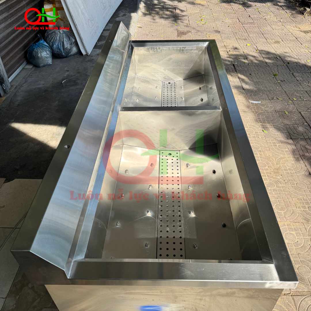Thiết kế 2 khoang giúp rửa – ngâm – làm sạch liên tục, tiết kiệm thời gian và phù hợp với các cơ sở có sản lượng thực phẩm lớn mỗi ngày.