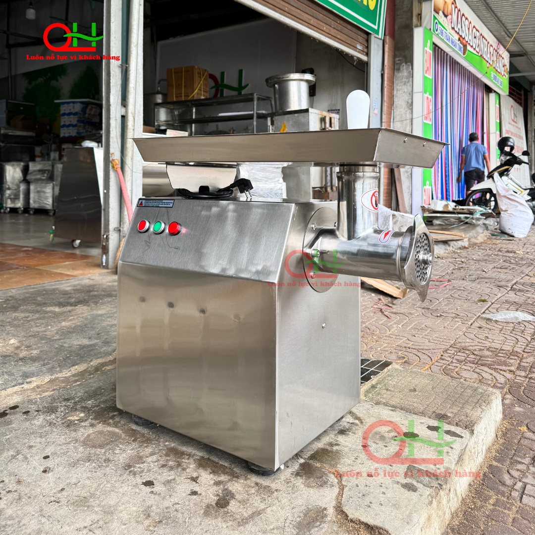 Với năng suất lên đến 240kg/giờ, máy đáp ứng tốt nhu cầu xay thịt số lượng lớn, đặc biệt phù hợp cho xưởng làm giò chả, xúc xích, nem chả.