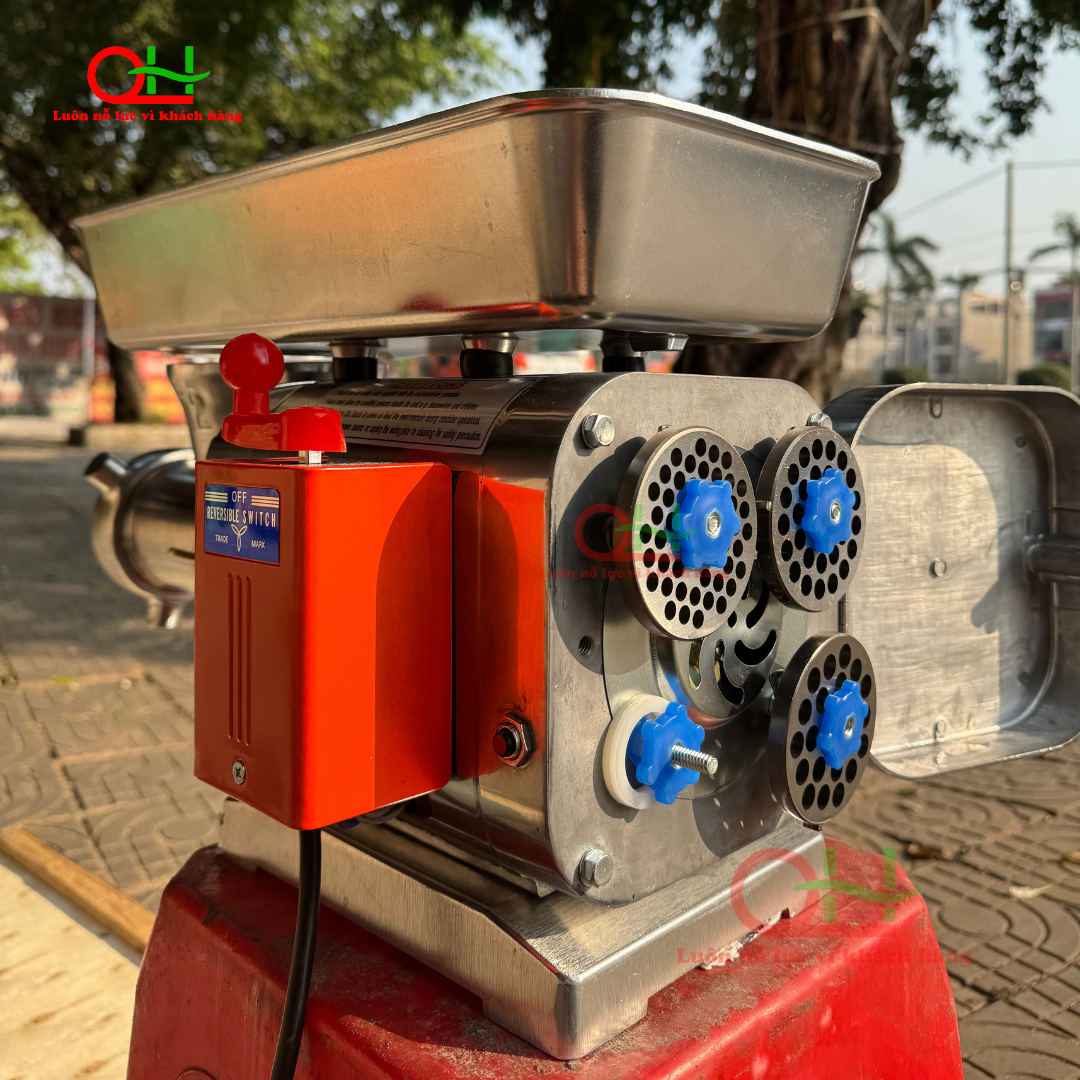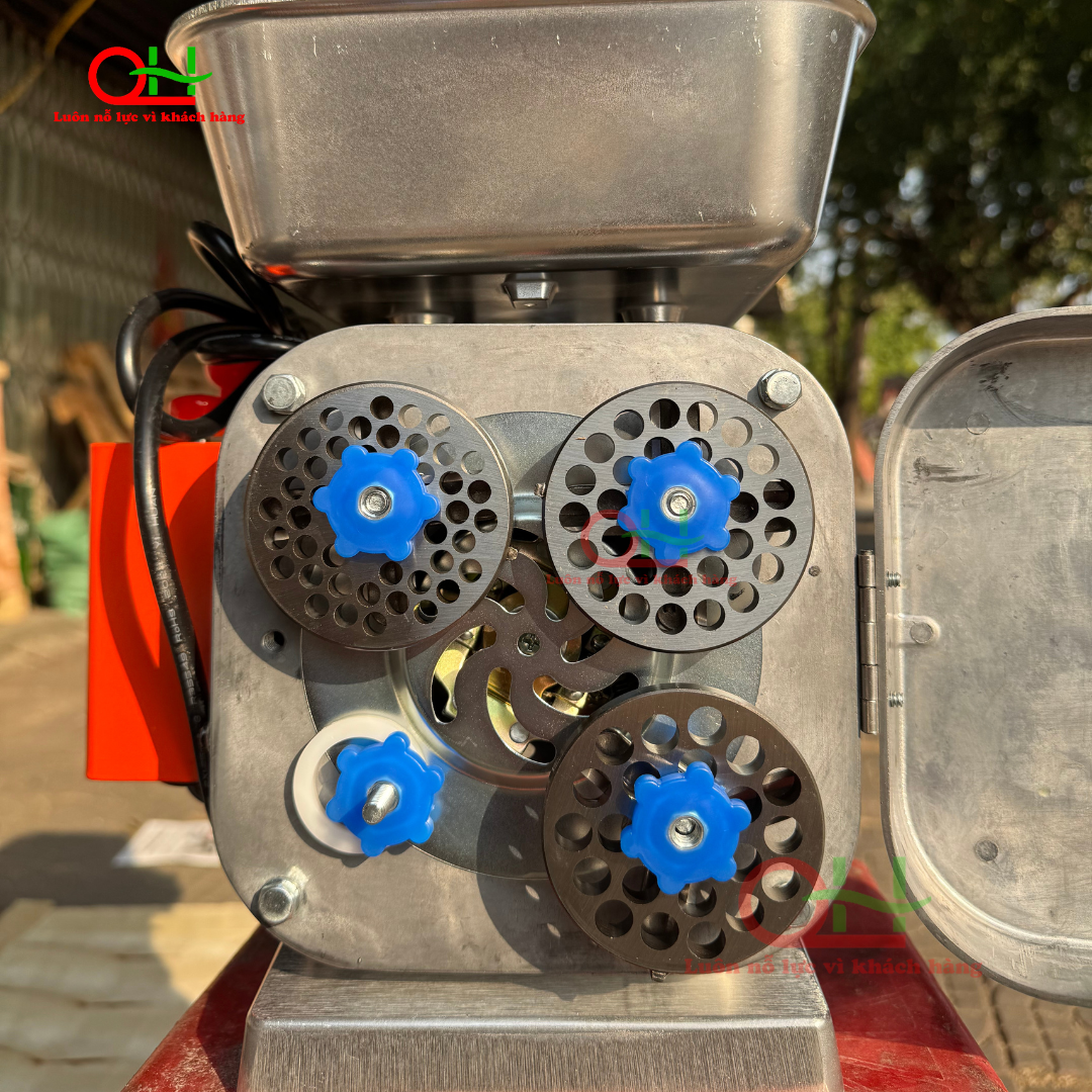 Máy được trang bị nhiều cỡ lưới sàng từ 4mm đến 12mm, cho phép người dùng dễ dàng lựa chọn độ thô – mịn phù hợp với từng món ăn và mục đích chế biến.