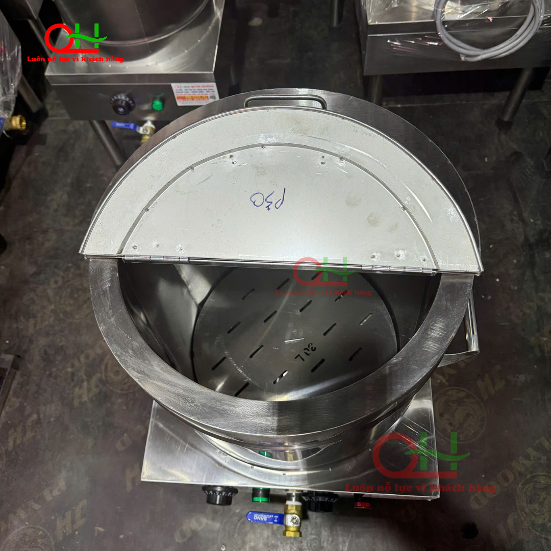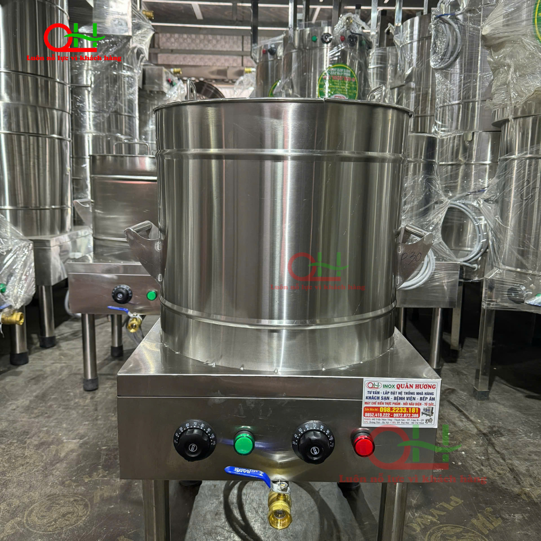 Nồi 30L có thể dùng để nấu nước dùng, ninh xương hoặc làm nồi trụng bánh, đáp ứng tốt cho quán bán buổi sáng, mô hình gia đình hoặc xe đẩy.