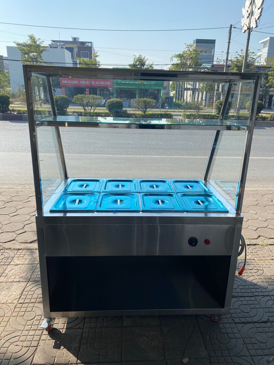 Quầy giữ nóng 8 khay có kính phù hợp cho: