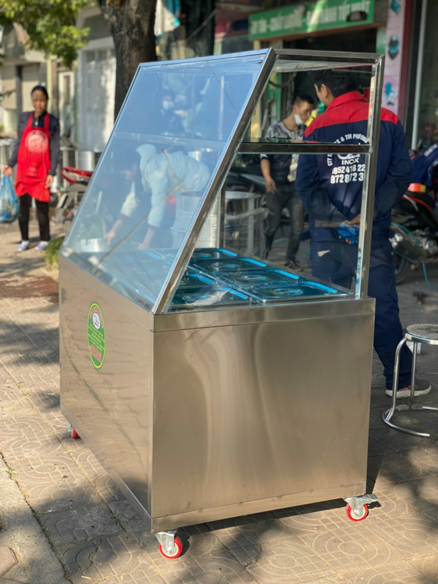 Toàn bộ thân quầy và khay đều làm bằng inox dày dặn: